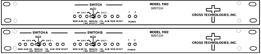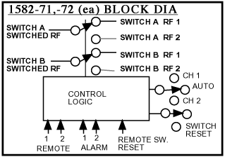 The 1582-71 RF Switch provides Auto, Manual, or Remote relay switching between CH1 and CH2 RF signals. Alarm conditions are either contact closure to ground or an open (selectable). Switching logic can be selected as follows: